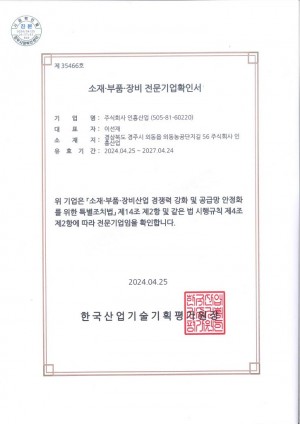 소재 부품 장비 전문기업확인서