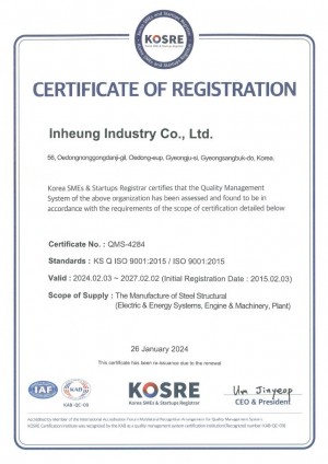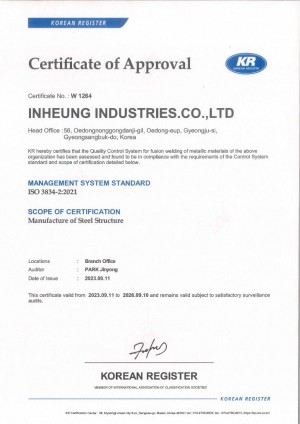 금속재료 용융용접 품질관리시스템 인증서 (영문)