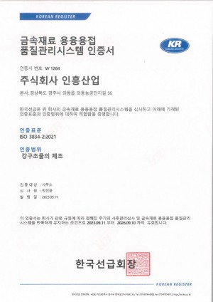 금속재료 용융용접 품질관리시스템 인증서 (국문)