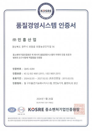 품질경영시스템 인증서(국문)